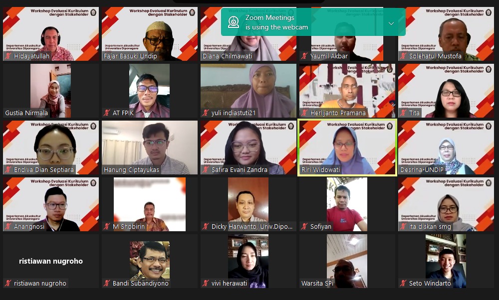 Aquaculture, Semarang – A curriculum evaluation workshop needs to be done to review whether teaching and learning activities are running well and effectively. The Department of Aquaculture held a curriculum evaluation workshop via the zoom platform on October 15, 2022.