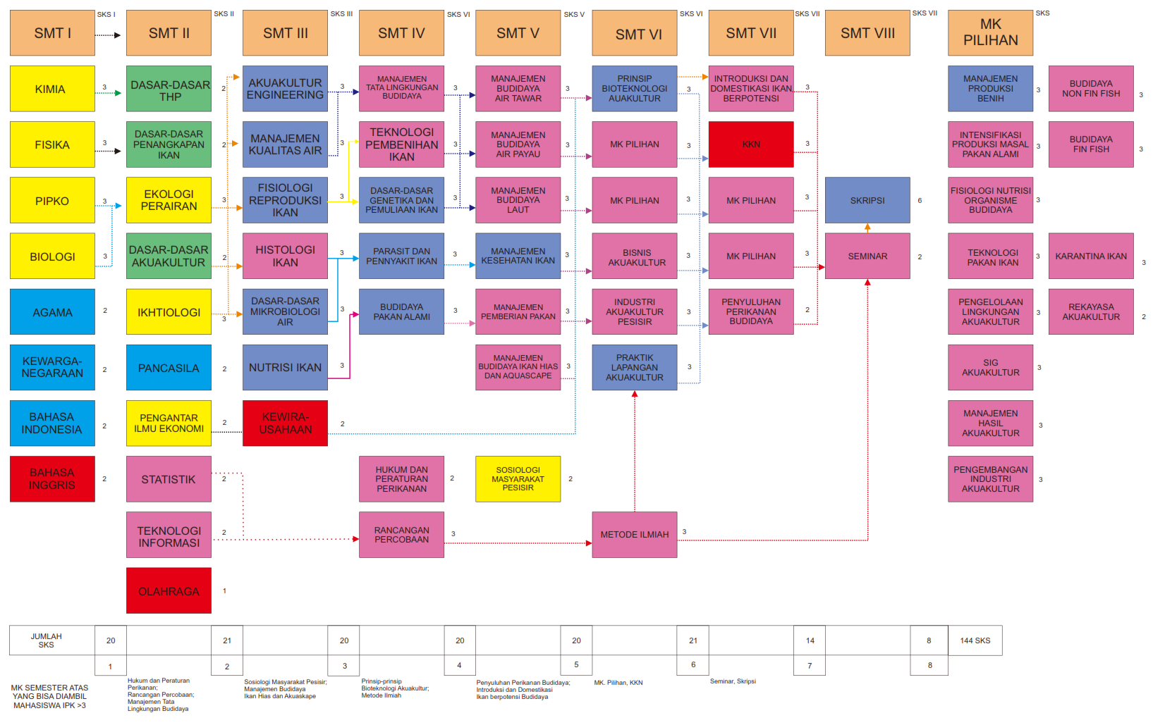 Semester 1 = 20 SKS | Semester 2 = 21 SKS | Semester 3 = 20 SKS | Semester 4 = 20 SKS | Semester 5 = 20 SKS | Semester 6 = 21 SKS | Semester 7 = 14 SKS | Semester 8 = 8 SKS